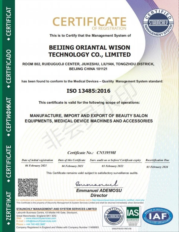 Como um dos fabricantes líderes de alta tecnologia nos campos de beleza da China, a Beijing Oriental Wison Technology Co., LIMITED distingue-se pelo seu compromisso com a manutenção de elevados padrões de qualidade, competitividade de preços e melhoria contínua da satisfação do cliente.