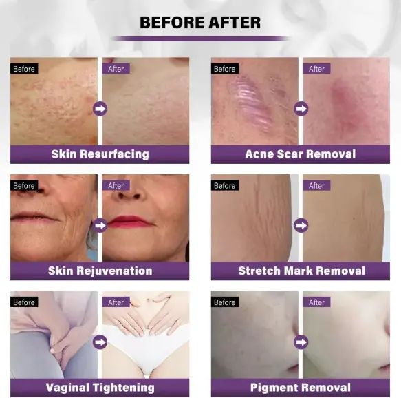 -Comparado com o laser fracionário de CO2 tradicional, este modelo possui resultados constantes de produção e tratamento dramático do tratamento. Além disso, você não precisa alterar o tubo de CO2.