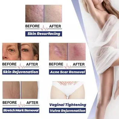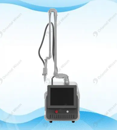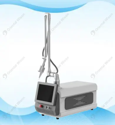 2. Este sistema leve fornece energia a laser de CO2 precisa em um padrão fracionário, tratando apenas uma fração da pele. Este método promove uma cicatrização mais rápida que os lasers tradicionais. É ideal para áreas delicadas e popular por sua eficiência e redução do tempo de recuperação do paciente.