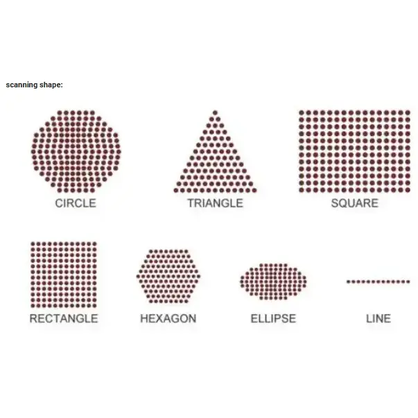 | Modo de varredura | Excesso de elipse, varredura de retângulo, varredura do triângulo | |